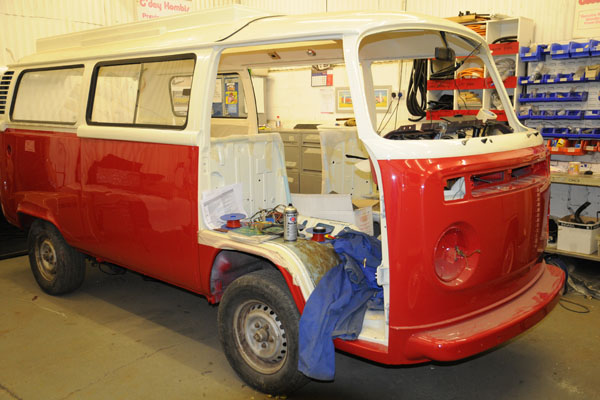 Another week goes by and The Sweets bus is really taking shape now. Full rewire, painted dash re installed, glass in, door cards in, engine bay wired up ready for rebuilt motor and box. Oh and the oh so cool flooring is down.